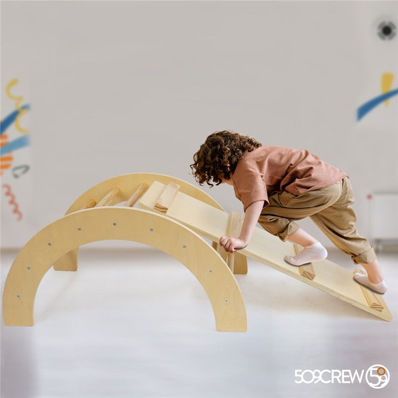 Es pot fer servir com a arc d’escalada i, si li donem la volta, com balancí per a bressolar i relaxar-se, a més ve amb una rampa amb llistons per a facilitar la pujada i baixada. Perfecte per a jugar tant dins com fora de casa. Desenvolupa les habilitats motores i l’equilibri: promou l’entrenament motriu, l’aptitud física i l’equilibri dels nens i entrena la coordinació ma-peu a través de l’activitat d’escalada.