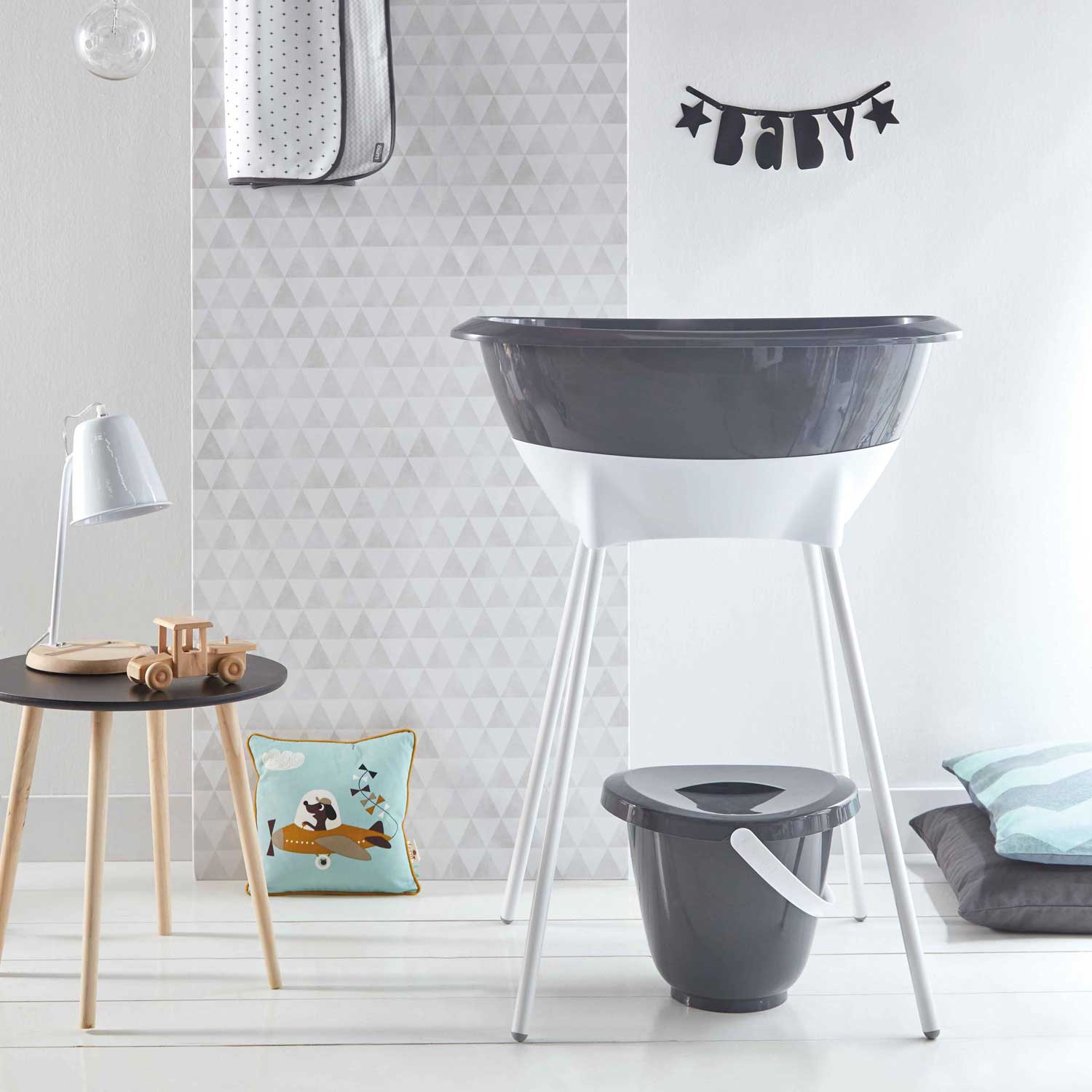 Banyera de disseny modern especialment dissenyada per quan acaba de néixer el nadó. Es pot combinar amb diferents accessoris per la cura del nadó. El suport i el reductor es vénen per separat.