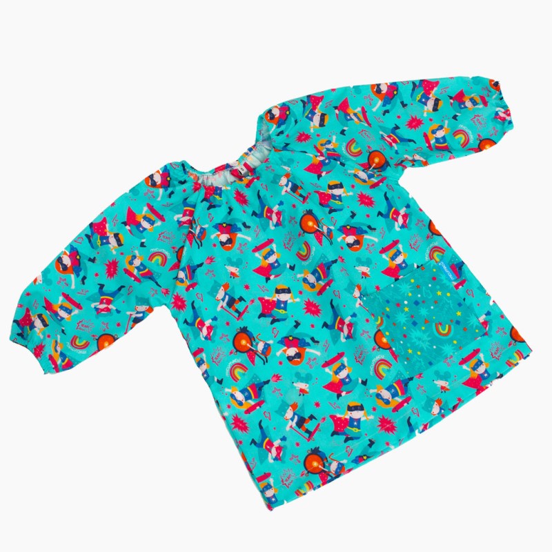 Bata confeccionada amb tela de cotó 100%, còmoda i divertida perquè els més petits s’ho passin molt bé cada cop que se la posin. Acabat amb goma al coll i les mànigues. Té una butxaca molt pràctica.
