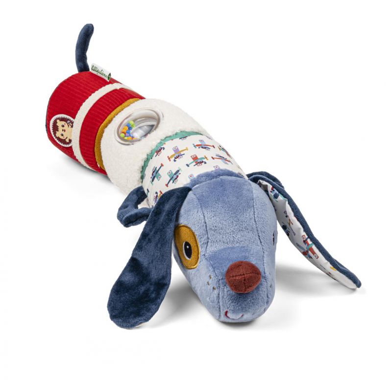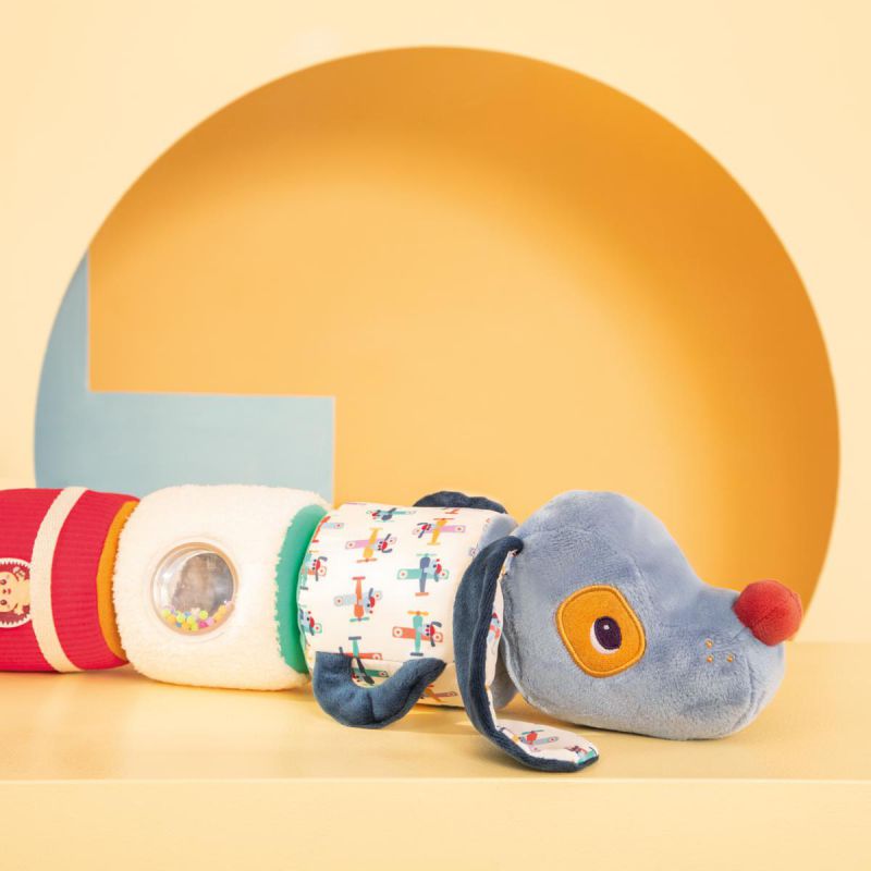 La cadena de sons d’en Jules ajudarà als més petits a desenvolupar l’oïda i les habilitats motrius fines. Amb els velcros, podran ajuntar i separar les diferents peces del lleó. Cada secció fa un so diferent i està feta amb teixit suau. Quatre sonalls en un!