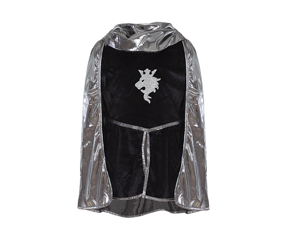 Set complet de túnica, capa i corona de cavaller platejat. Per a un look de guerrer medieval elegant, disponible en la talla 5-6.