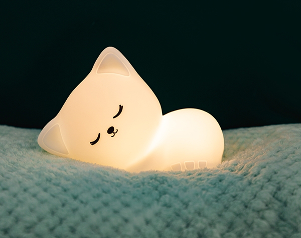 Làmpada de nit suau i recarregable per a il·luminar l’habitació dels més menuts. És tàctil, es pot netejar i té quatre efectes de llum: llum blanca suau, llum blanca més intensa, llum de colors canviants i llum de color fixe. Opció de comandament a distància. Bateria recarregable.