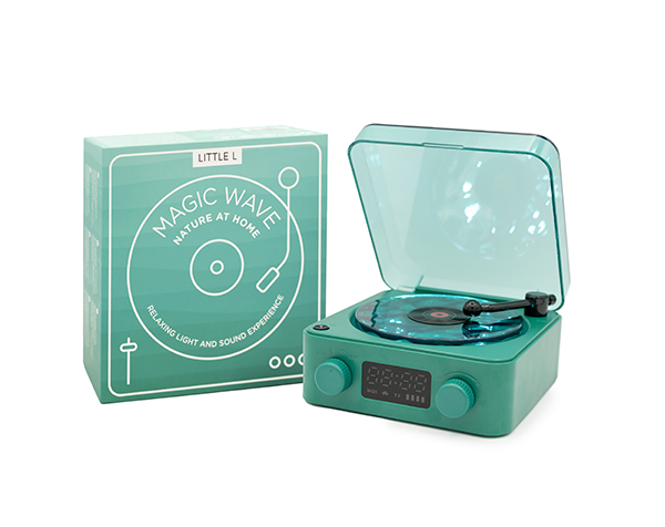 Altaveu sensorial amb disseny tocadiscs retro que combina sons relaxants, llum ambiental i bluetooth per a crear un ambient sensorial únic.