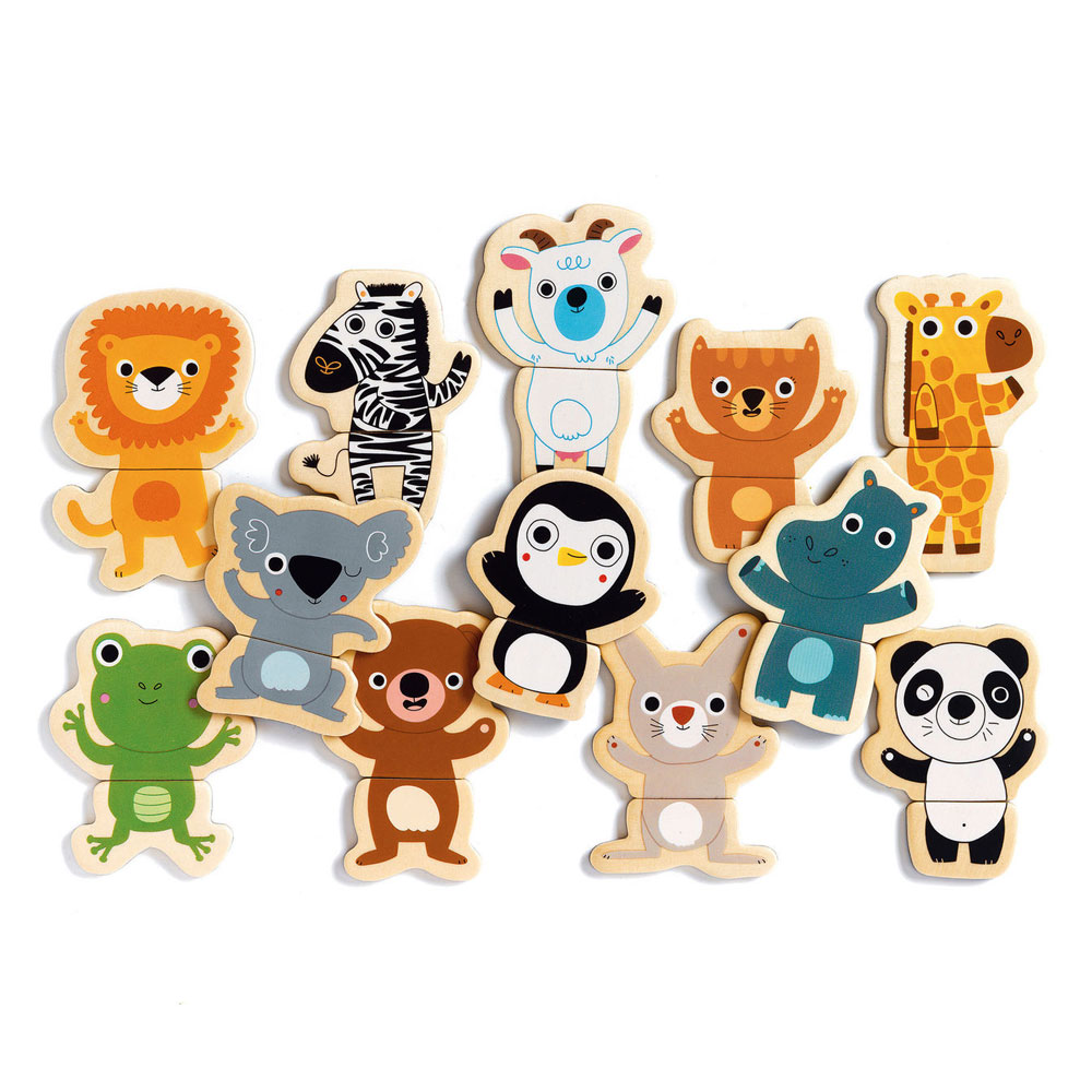 Un joc magnètic que inclou 12 animals de fusta diferents, cadascun format per 2 peces. La idea és combinar les 2 peces adequades o barrejar-les per tal de formar les teves pròpies combinacions. Un joc molt divertit per a nens molt petits.