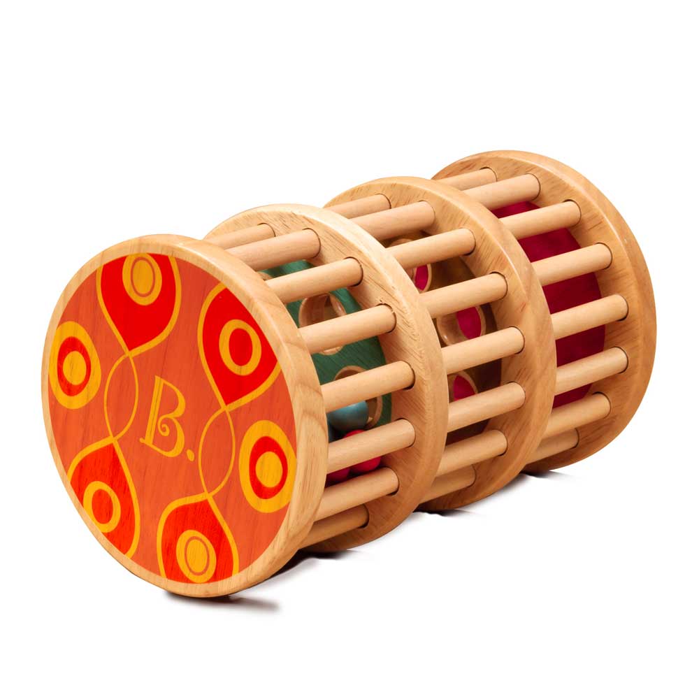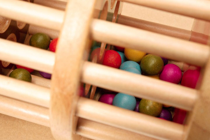 Canta, camina i balla al so de la pluja amb aquest bonic pal de pluja de fusta amb boletes de colors al seu interior que cauen creant el so d e l’aigua quan cau. Una joguina de fusta llisa especialment preparada per les mans més petites.